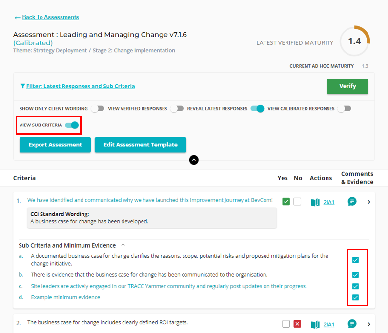 Some organisations reported that sub-criteria responses would disappear when other criteria were being updated. The responses were being saved in the back-end, but were not being displayed when a user viewed the assessment. This has now been resolved.