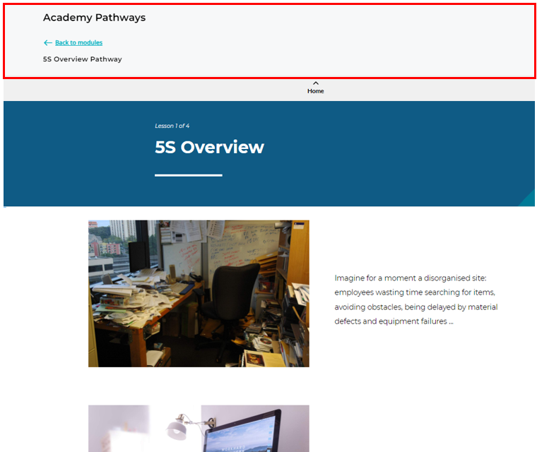 Previously when a user scrolled through Academy modules, the top navigation pane would move with the content. This meant that a user would have to scroll all the way back to the top to go back to the modules. The change of freezing the top pane allows a user to easily navigate back to modules without needing to scroll.