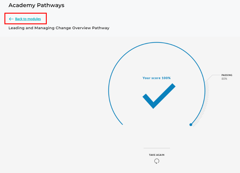Use the "Back to modules" link to check your progress