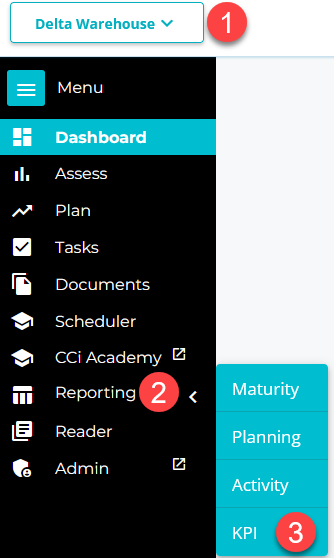 Navigate to the area where you want to view the KPI data.