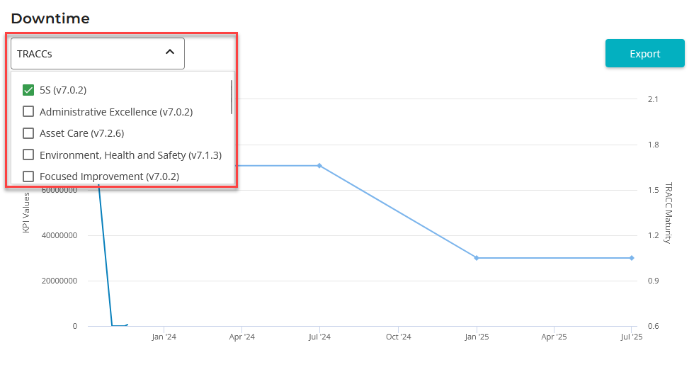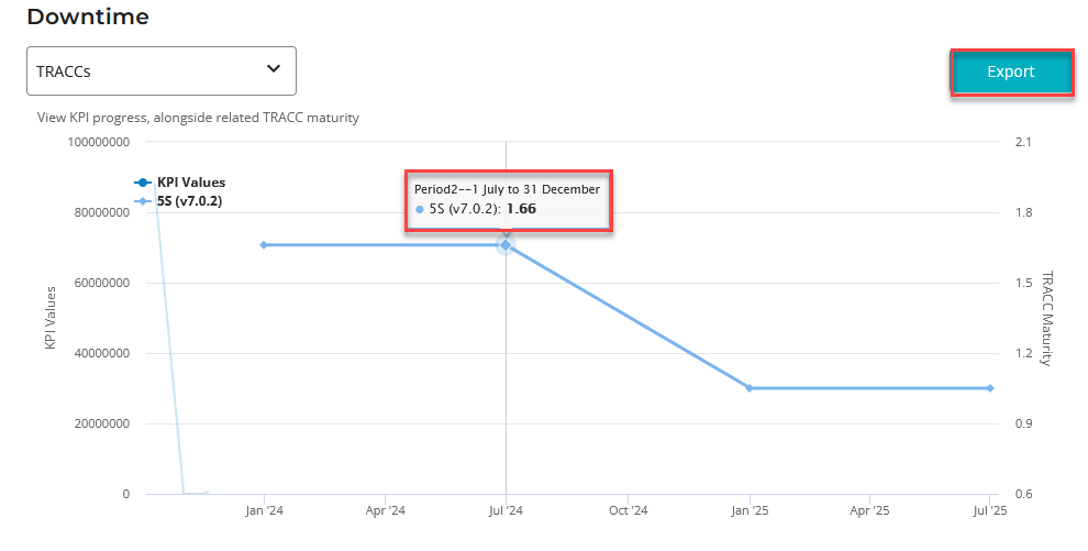 - The chart allows you to view KPI progress alongside related TRACC maturity.