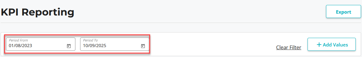 - Insert a date range to view specific KPI data