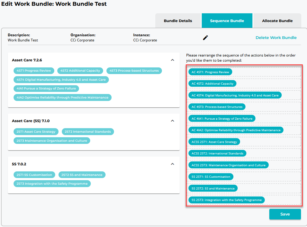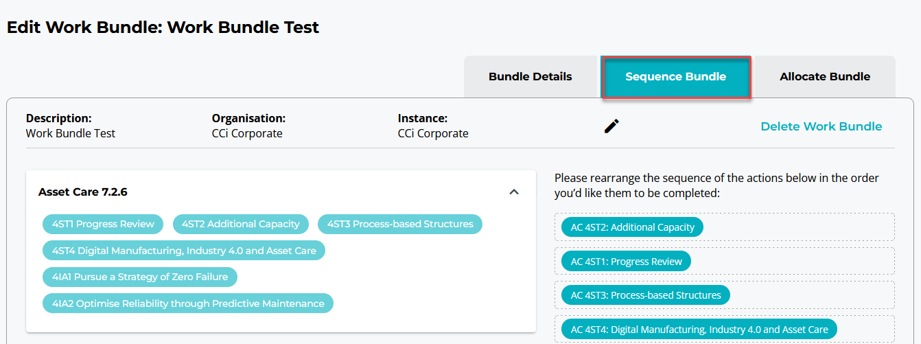 TRACC best practice actions can be re-ordered in an existing Work Bundle.