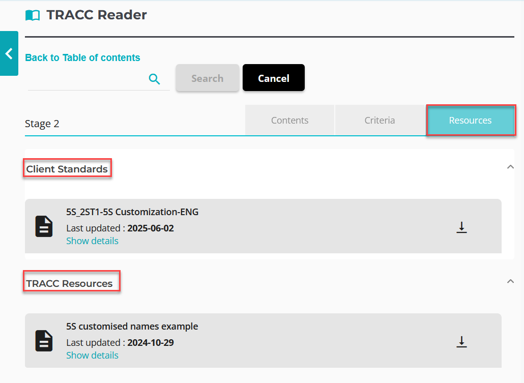 Access TRACC Resources or Client Standards and Best Practices under the Resources tab.