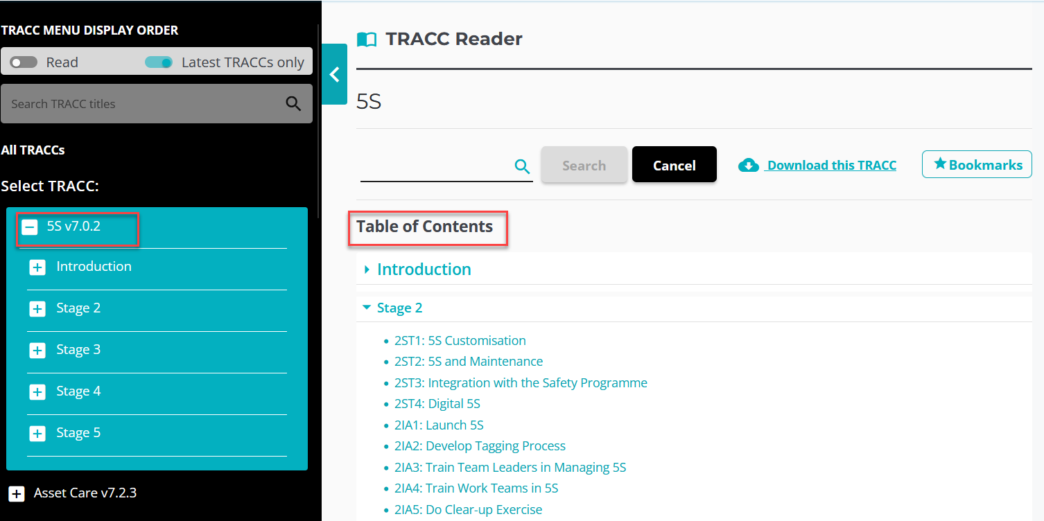 - You can also search for a specific TRACC and access multiple versions if required.