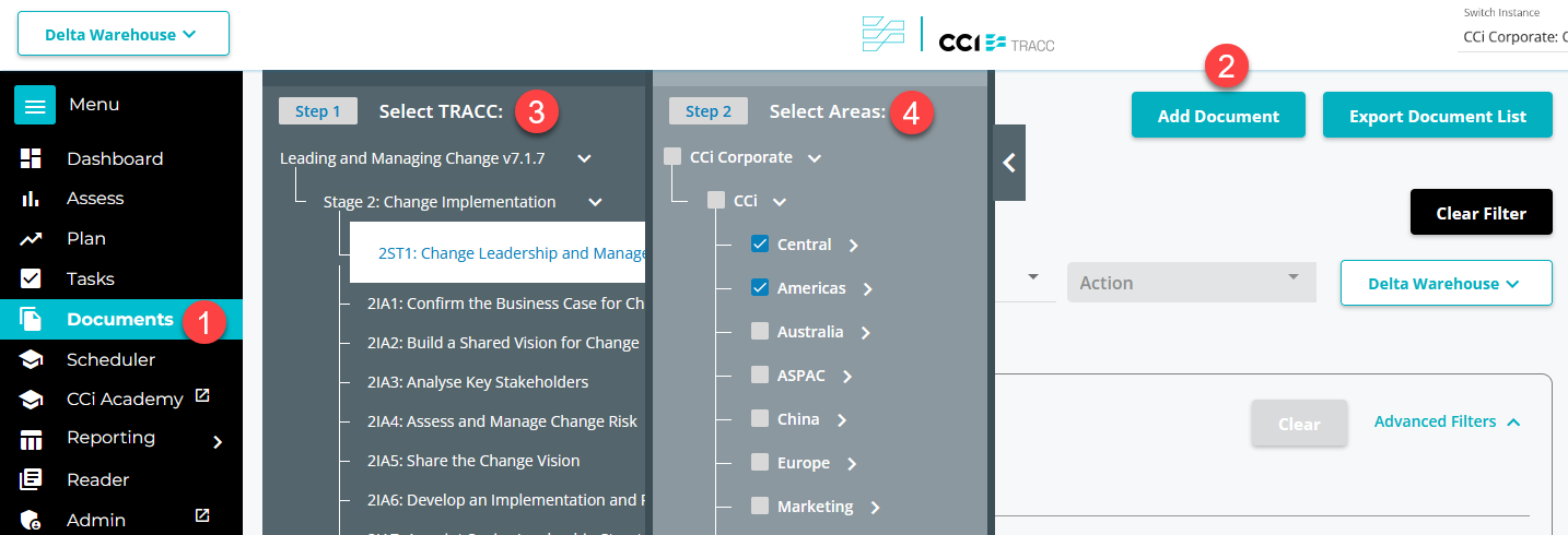 Select which TRACC action items you would like to upload the document to.