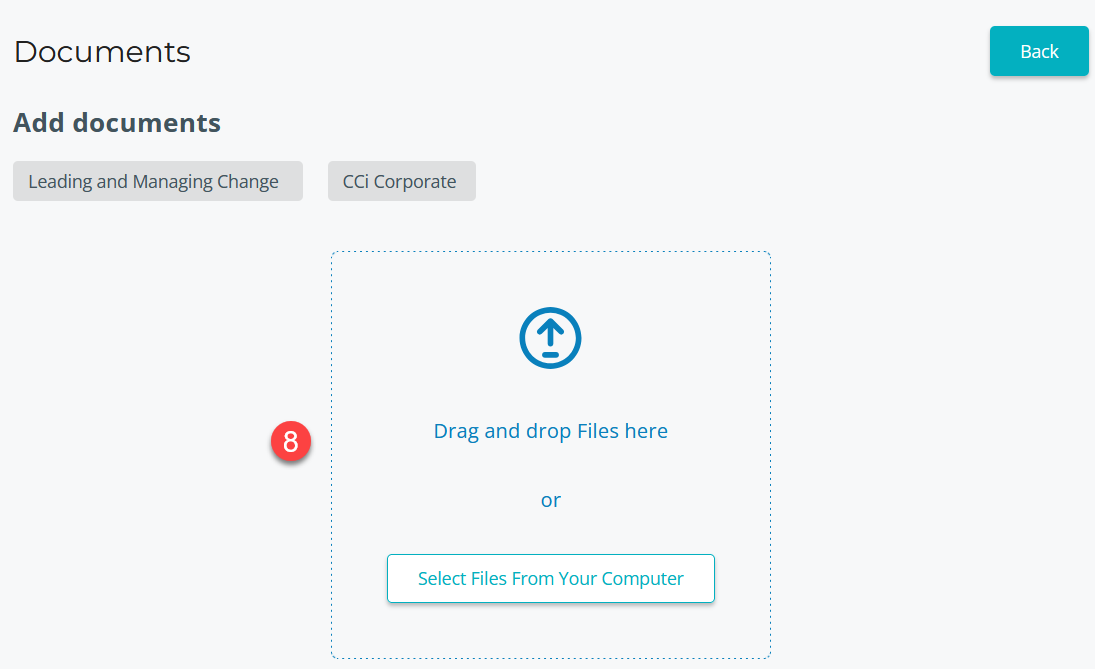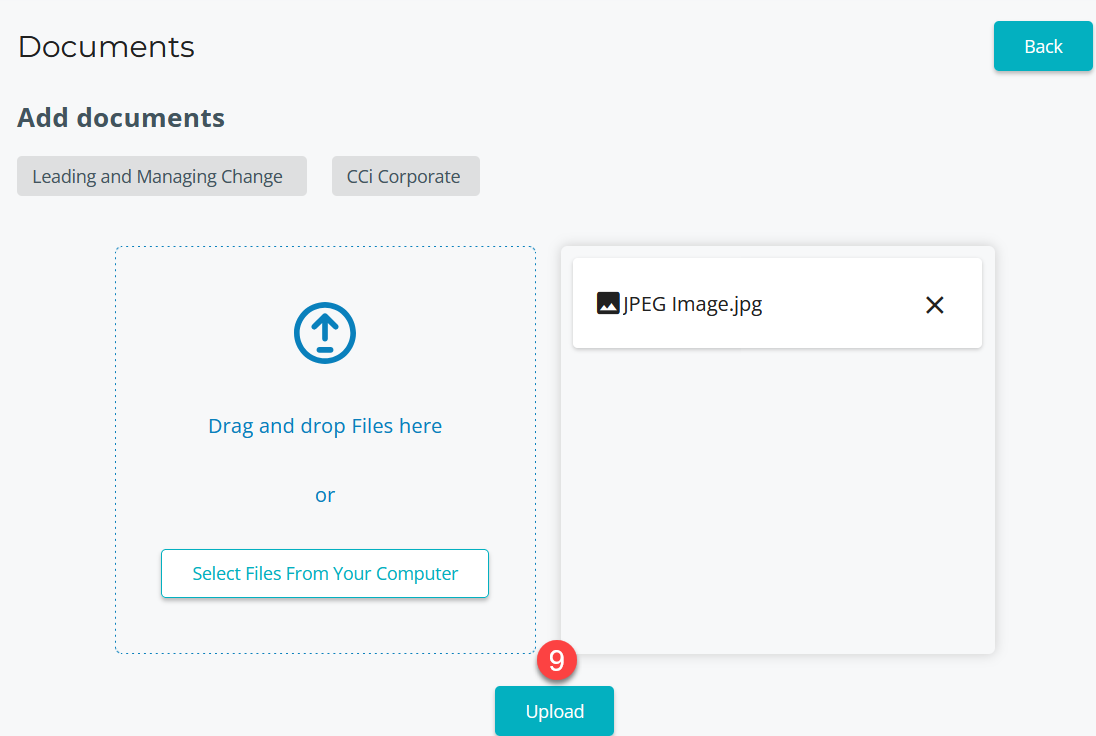 To upload documents via the Documents page: