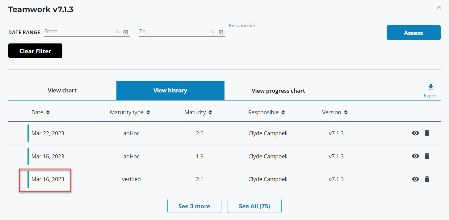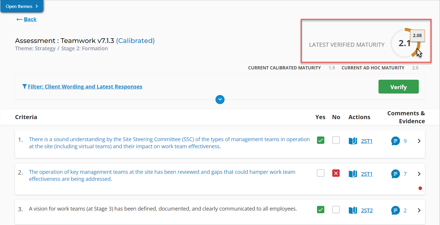 In some instances the latest verified maturity reflected in the assessment history table did not align with the latest verified maturity in the assessment. These are now in sync.