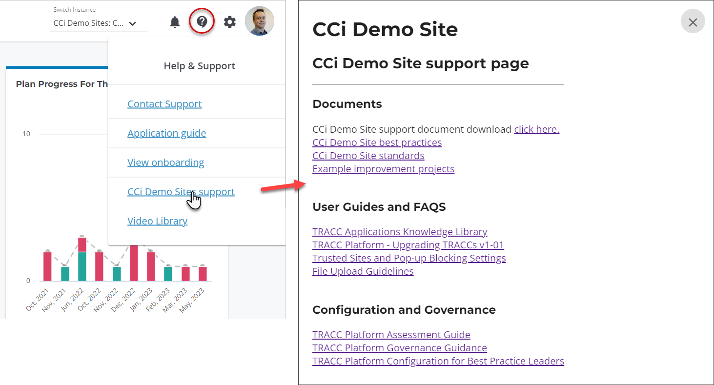 The CCi team is now able to create a custom support page for your organization, accessible via the Help menu.