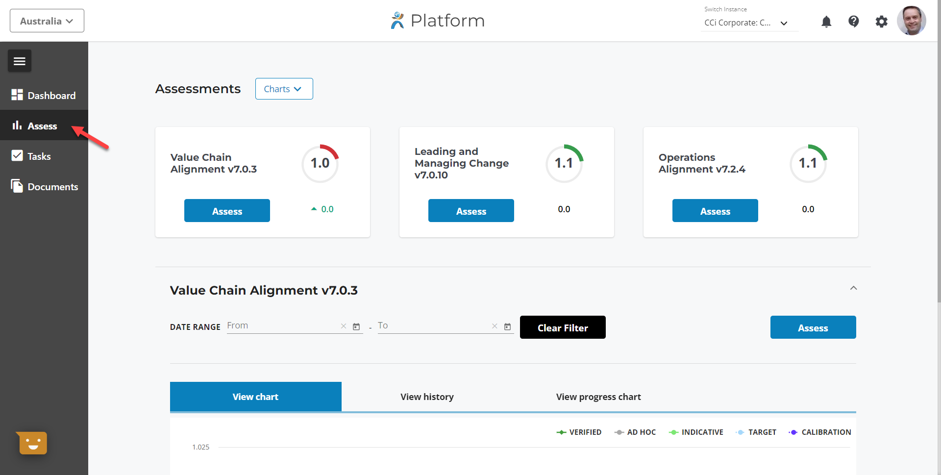 Users can now switch to areas they don’t have a role in. The Platform automatically shows the Assessment page for those areas, where they will have a read-only view of the criteria responses and associated comments and evidence. Access to other Platform features are restored when users switch back to their assigned areas.